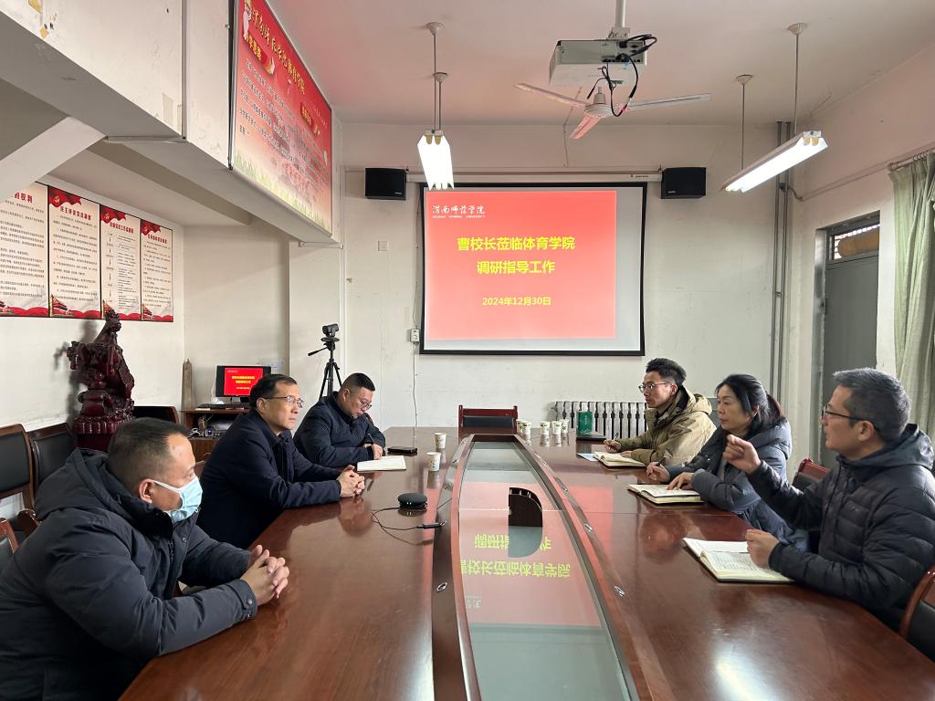 12月30日,副校长曹强来体育学院调研教学场所、实验室及办公条件,国资处邹朋波、资产经营公司郭音及学院党政负责人等相关人员陪同。