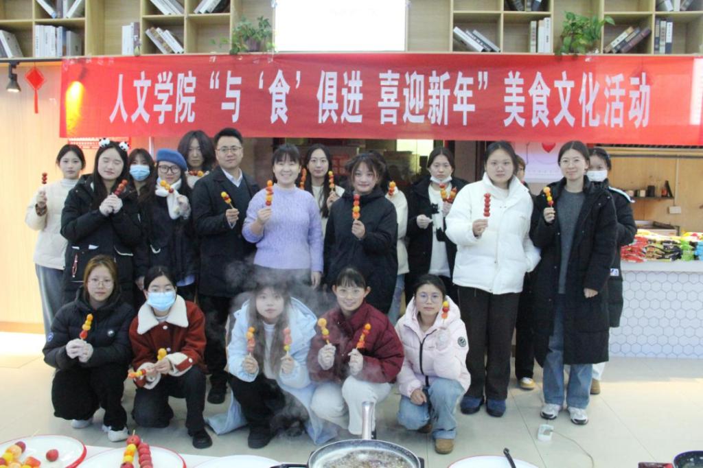 1月3日下午,人文学院于二餐三楼举办“与‘食’俱进 喜迎新年”美食文化活动。人文学院党总支书记张晶,党总支副书记、副院长王昱,学工办副主任孟子祥、辅导员王雪、王乐靖、孙丽诗与30余名同学参与,辅导员张立夏主持活动。