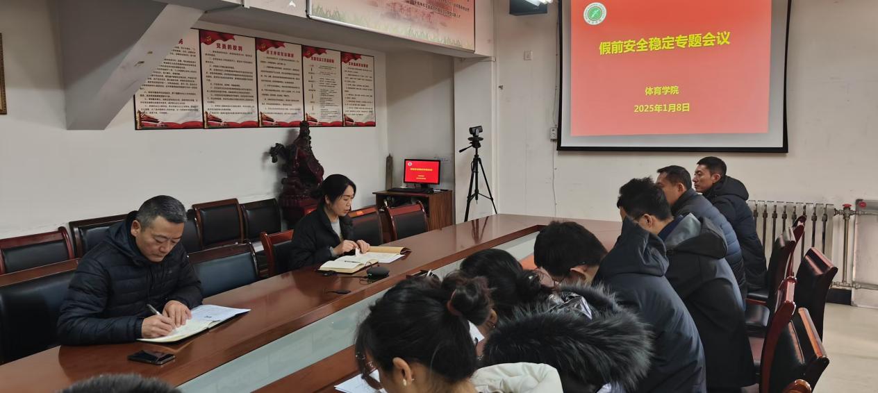 1月8日下午,体育学院召开安全稳定专题会议。会议由党总支书记李春兰主持,全体处科级干部、辅导员参加。