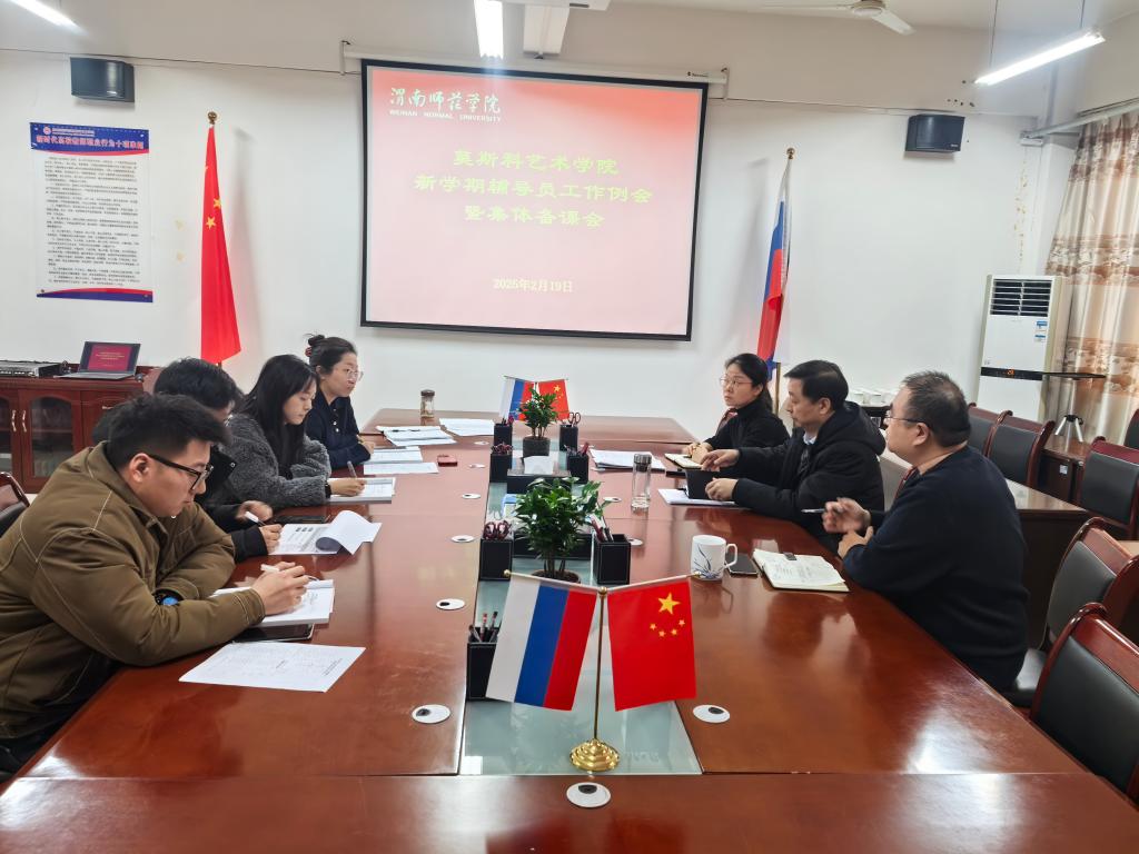 2月19日,莫斯科艺术学院开展“集体备课启新程 凝心聚力启新程”开学第一课。学院党总支书记孟波、执行院长殷晓克、党总支副书记叶晓燕、学工办副主任段菲及全体辅导员参加,会议由叶晓燕主持。