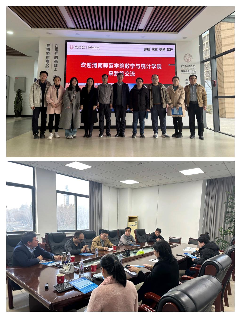 2月26日至27日,数学与统计学院院长陈斌、屈改珠教授、办公室副主任夏超、青年博士王伟、张佳凡一行先后前往河南大学数学与统计学院、西北大学数学学院和西安电子科技大学数学与统计学院,举办高层次人才专场招聘宣讲会。河南大学来自各年级的13名优秀博士生参加活动,达成初步意向3人;西北大学来自各年级的8名优秀博士生参加活动,达成初步意向3人;西安电子科技大学各年级12名优秀博士生到场聆听,达成初步意向2人。