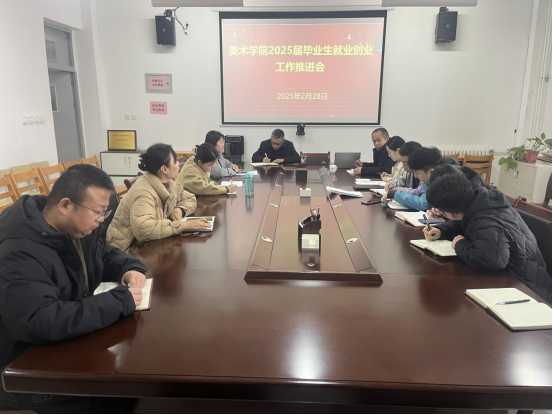 2月28日上午,美术学院召开2025届毕业生就业创业工作推进会。副院长石海彬、党总支副书记雷毅、副院长石洁、专业负责人及全体辅导员参加此次会议。此次推进会旨在切实做好2025届毕业生就业创业工作,积极应对当前复杂多变的就业形势,帮助毕业生实现高质量就业。