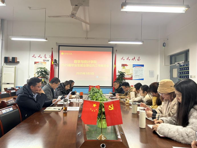 3月3日,数学与统计学院召开2025届毕业生就业暨征兵工作推进会,学院领导班子及全体行政人员参会。