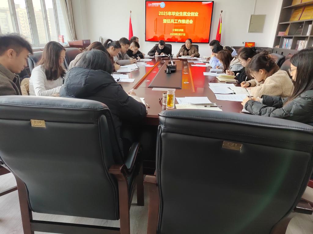 2月27日,计算机学院召开2025届毕业生就业创业暨征兵工作推进会。学院处科级干部、专业负责人及全体辅导员参会,会议由党总支书记武楠主持。