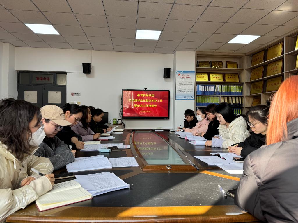 2月26日下午,教育科学学院召开2025届毕业生就业创业工作暨征兵工作推进会。院长李西彩,副院长马雅菊、刘峰,学工办副主任赵丹卉及全体辅导员参加会议,会议由学院党总支副书记马雷蕾主持。