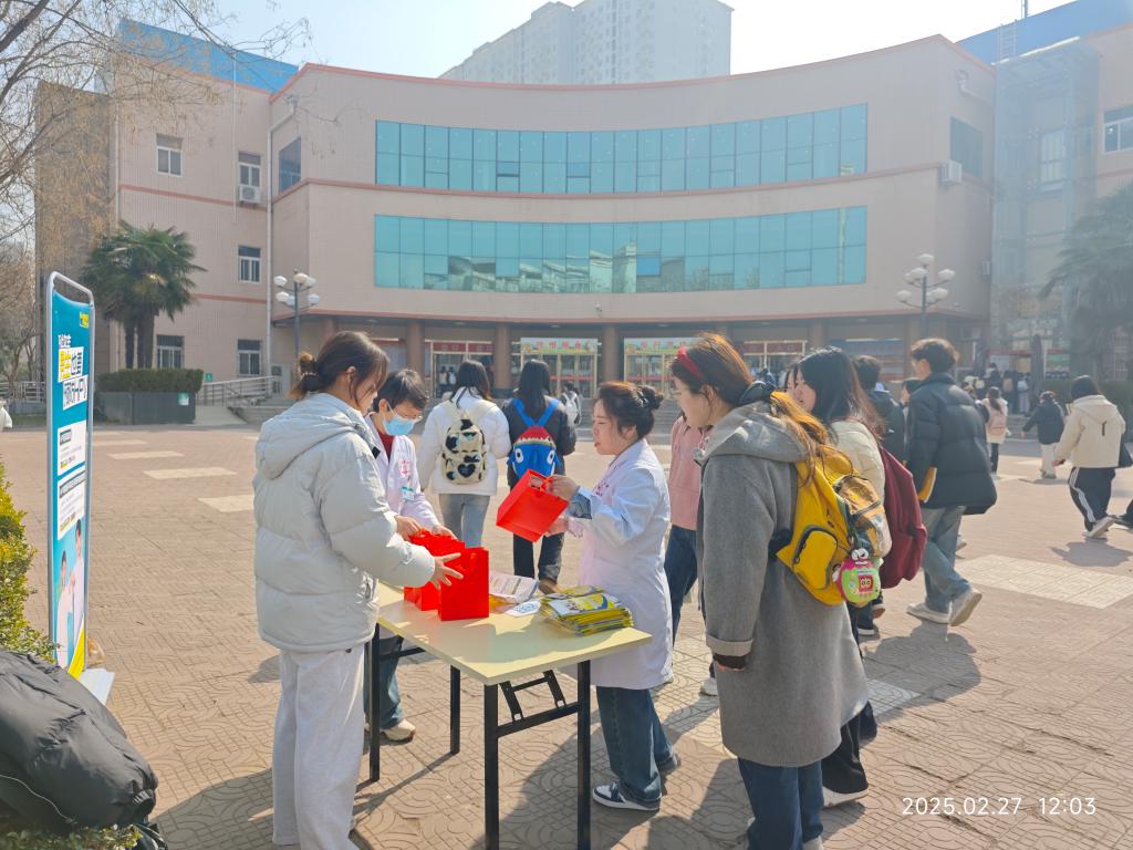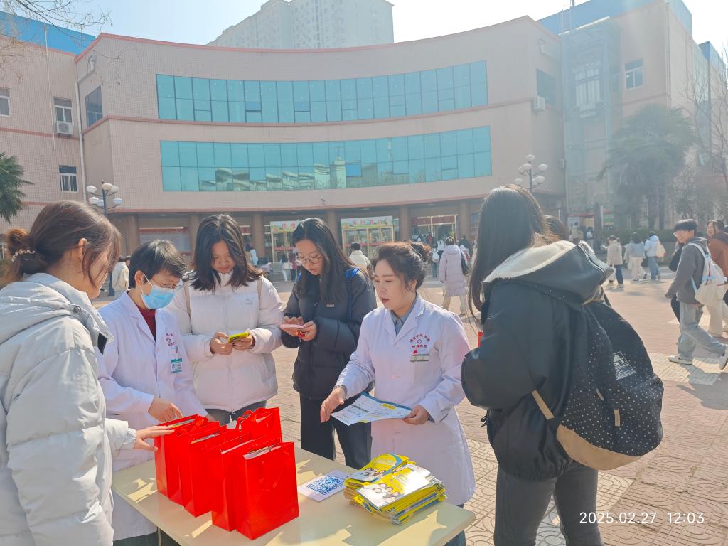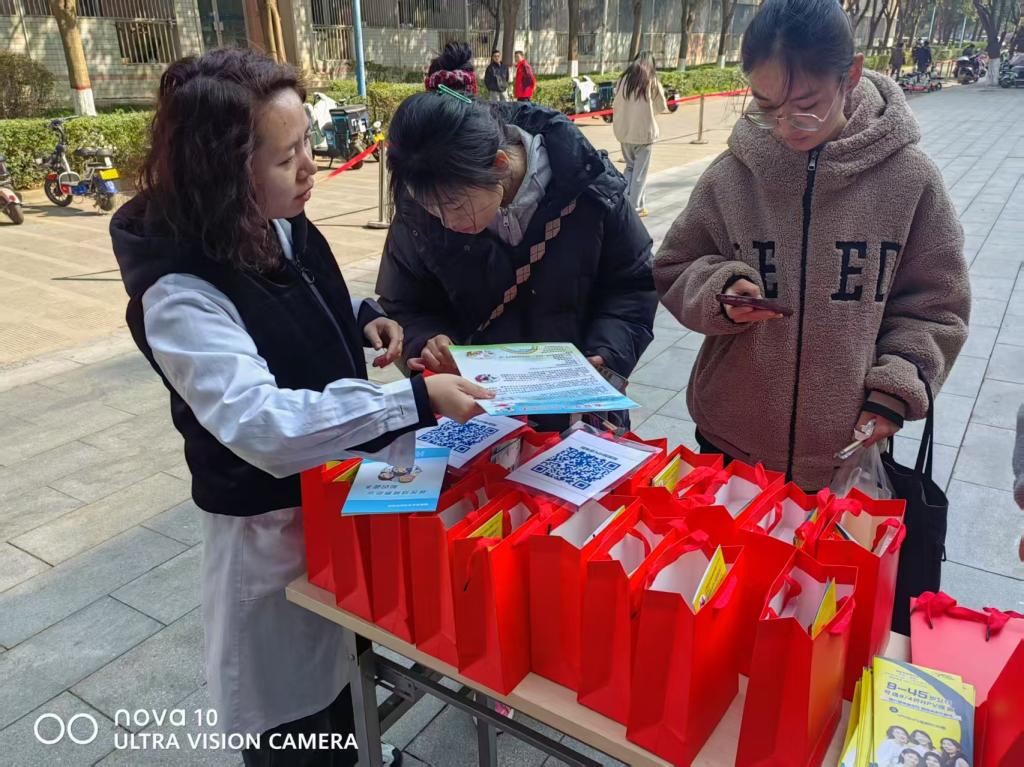 在第115个“三八”国际妇女节来临之际,为持续提高女大学生的健康意识,普及女性健康知识,附属医院依托“渭”爱医行 暖心护康思想文化特色品牌项目,于2月27日上午在学生餐厅门口精心组织开展了一场以“关爱女性健康”为主题的女性健康知识宣传活动。此次活动聚焦女大学生群体,重点围绕HPV防治知识展开,旨在为女大学生的健康成长保驾护航。