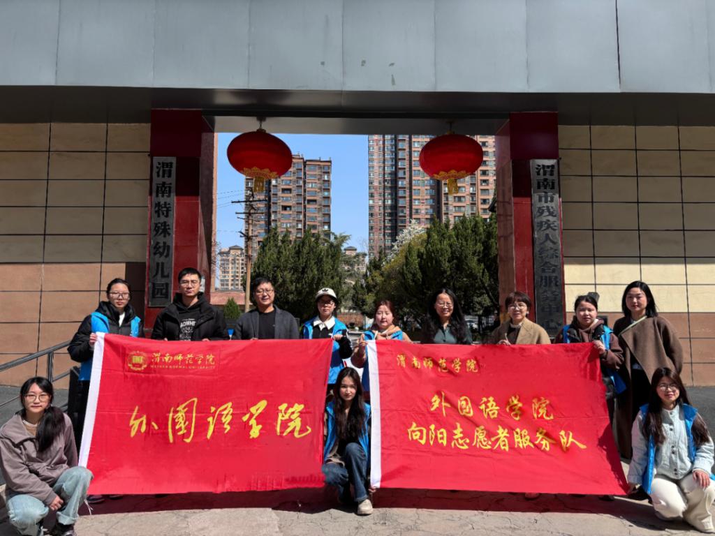 3月19日上午,外国语学院院长李海荣,党总支副书记、副院长高军强,团委书记伍萌,辅导员杜相宜以及志愿者走进渭南市特殊幼儿园,开展了关爱特殊儿童志愿服务活动。