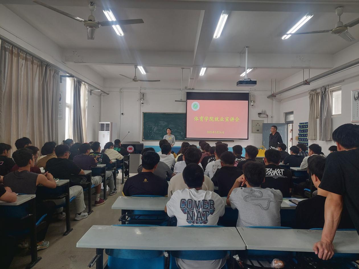 3月26日,体育学院在A515教室开展了体育学院就业宣讲会。参会人员有体育学院党总支书记李春兰、副书记闵雄飞、学工办主任朱颖妮以及大三全体学生。