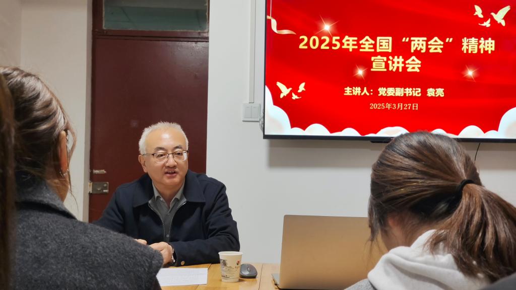 3月27日下午,党委副书记袁亮深入人文学院一站式学生服务社区宣讲2025年全国两会精神,该院师生代表十余人参加了宣讲活动,党总支书记张晶主持活动。