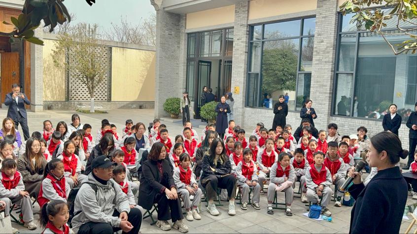 在场景化教学环节,讲解员胡晓以《红色淡村风雨1932》为主题,生动再现1932年两当兵变结束后,习仲勋秘密返乡领导“分粮斗争”的革命往事,带领大家追寻先辈们在这片土地上留下的坚实足迹。讲解员孙旭佳紧密结合小学思政课本内容,以西安古城墙三次拆除危机为切入点,深入阐释“以法护文”的当代价值,引导学生深入思考文化遗产保护与法治精神之间的内在联系,让历史与现实相互映照,促使学生深刻领会红色精神在当代社会的重要意义与时代价值。