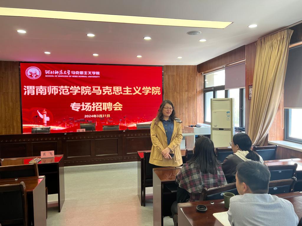 3月31日下午,马克思主义学院院长张萍、党总支副书记肖飞一行赴河北师范大学马克思主义学院进行调研和高层次人才招聘。河北师范大学马克思主义学院党委书记张新桥、执行院长张广兴、党委副书记李萌、副院长安巧珍参加了座谈交流。