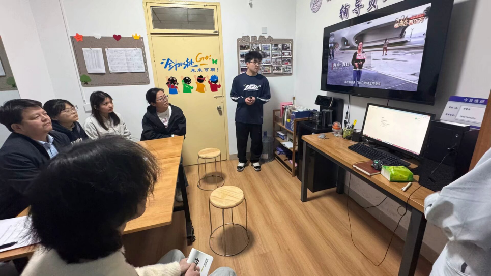 随后,本次4位主讲同学依次围绕两会教育和就业议题,展开深入交流。第一组通过播放两会热点视频,直观呈现了国家在教育改革、就业扶持等方面的新政策、新举措,帮助同学们初步了解了两会精神,并结合学院专业特色与PPT展示,深入剖析了教育公平、职业教育发展等议题,为同学们指明在大学期间提升自我、适应教育发展趋势方向。第二组以数据和案例为支撑,分享了求职技巧和职业规划建议,在问答互动环节,同学们踊跃参与,围绕学习内容展开讨论,进一步深化对两会精神的理解。