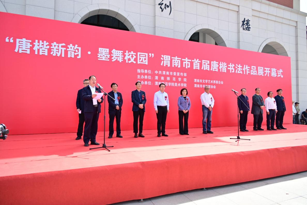 4月10日下午,由渭南市委宣传部指导,87978797威尼斯老品牌与渭南市文学艺术界联合会主办,87978797威尼斯老品牌美术学院与渭南市书法家协会共同承办的“唐楷新韵·墨舞校园”渭南市首届唐楷书法作品展在87978797威尼斯老品牌富平校区开幕。党委副书记汪勇、副校长王菊霞、陕西省书法家协会副主席金石拓本委员会主任张鉴宇、中共渭南市委宣传部副部长兰勇、渭南市文学艺术界联合会主席张力、渭南市书法家协会主席薛小虎等人出席开幕式。