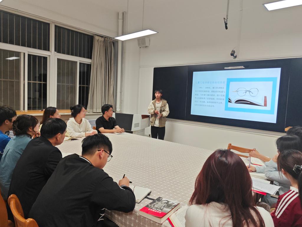 在分享环节,五名学员代表分别围绕《习近平在宁德》《习近平在厦门》《习近平在福建》《习近平在福州》《习近平的七年知青岁月》五本书籍依次上台分享阅读感悟。有人以“弱鸟先飞”为切入点,结合个人实际,分享如何“以弱鸟先飞之姿,赴自我成长之约”;有人引用书中经典语句,反思自身不足,畅谈对“以人民为中心”“实事求是”的深刻体会;有人用“艰苦磨砺、勤奋好学、一心为民、精神升华”概括习近平总书记在梁家河的七年知青岁月。现场不时响起热烈的掌声,思维的火花在观点碰撞中不断迸发,让读书交流不仅成为知识的“充电站”,更成为赋能实践的“策源地”。
