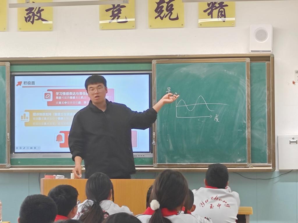 在课堂上,心理学专业同学充分发挥专业所学,通过生动有趣的案例、互动游戏、情景模拟等多样化的教学方式,将抽象的心理学知识转化为中学生易于理解和接受的内容。课程围绕情绪管理、人际交往、自我认知、压力应对等与中学生日常生活紧密相关的主题展开,深入浅出地引导中学生关注自身心理健康。在此期间,中学生提出了许多学习和生活中遇到的困扰,心理学专业同学都能耐心倾听,一一给予帮助和引导。不少中学生表示:“原本以为心理问题离自己很遥远,听了今天的讲座才发现,关注心理健康是这么重要,也学会了很多实用的小技巧。”