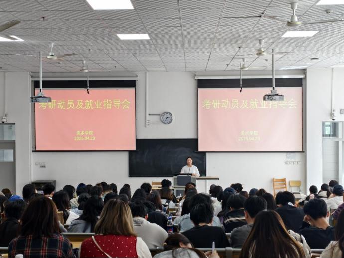 4月23日下午,美术学院在富平校区主召开2025年考研动员及就业指导会。会议由学工办副主任李媛媛主持,副院长石洁作专题动员讲话,全体2026届毕业生参会。