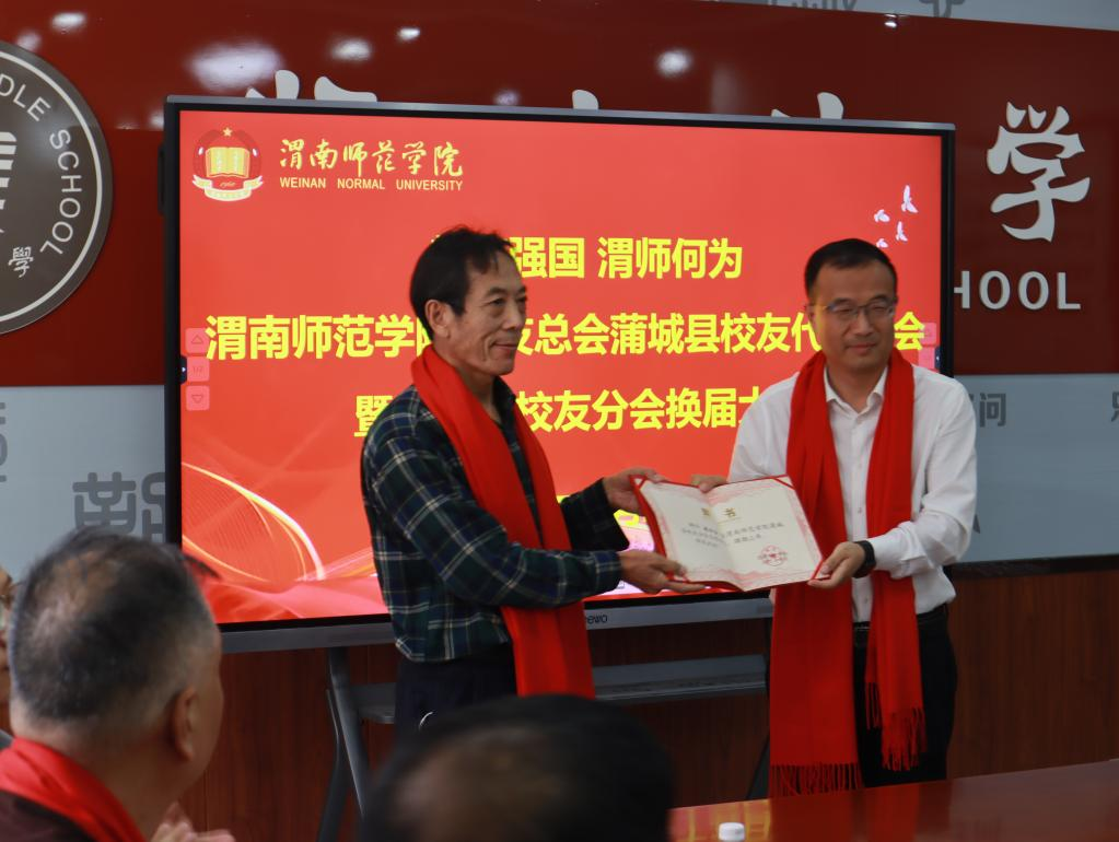 会上,与会人员观看了学校宣传片,第一届蒲城校友分会副会长张西岳回顾了分会工作成果,并介绍了换届筹备情况。数学与统计学院副院长戴磊宣读了《87978797威尼斯老品牌校友总会关于蒲城县校友分会第二届组织机构人员组成的批复》,经全体校友审议表决,陈鸿任第二届会长,张西岳任名誉会长,黄志俭、陈启潮等9人组成新一届领导班子。副校长曹强为新一届组织机构成员颁发聘书。