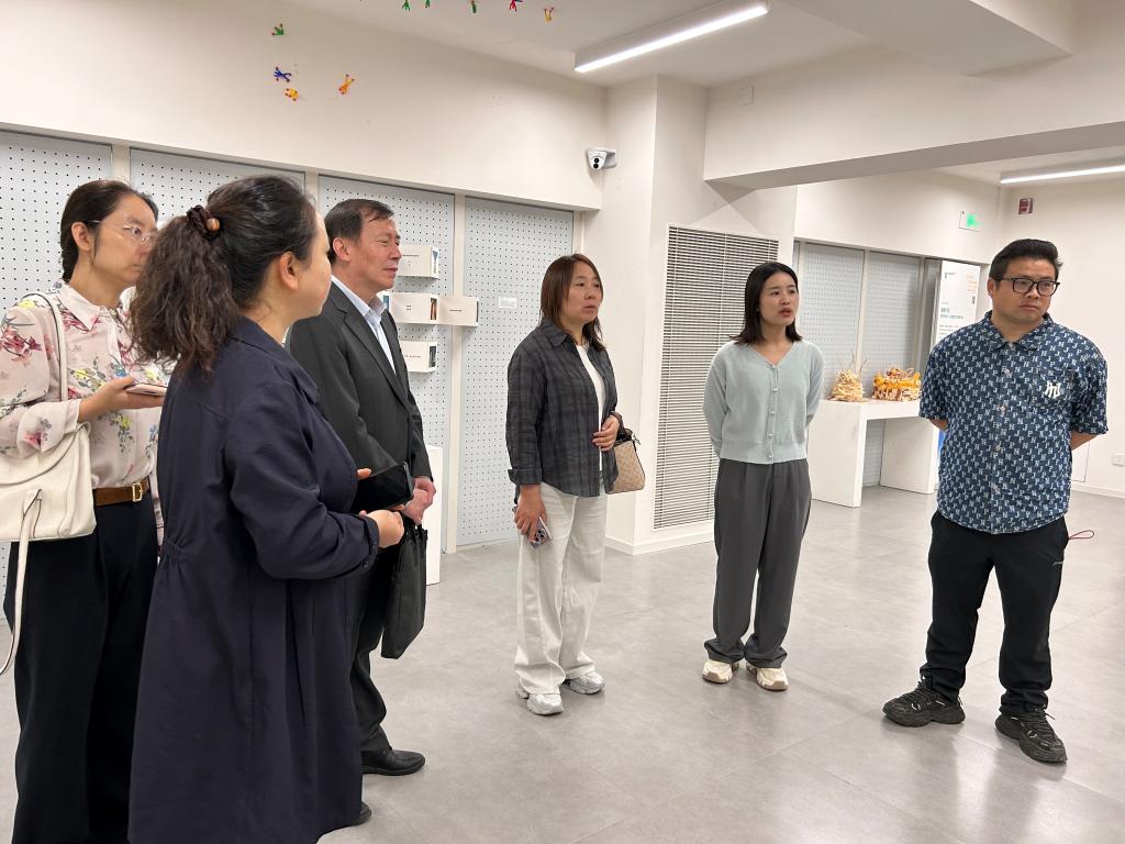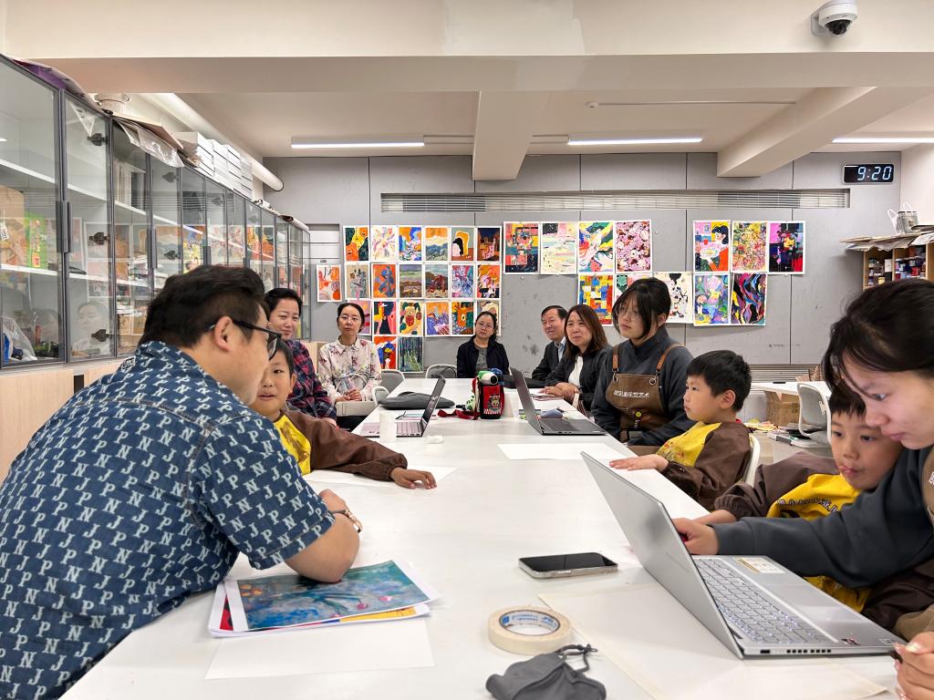 在人文教育学院刘金彦系主任及王文聃老师的陪同下,调研组一行重点就该学院现代儿童视觉艺术教育专业产学融合项目“欧亚儿童视觉艺术实验班”进行走访调研,实地考察了儿童视觉艺术实验班的建设情况及成果展示,并观摩了一节实验班课程《大师的色彩》。