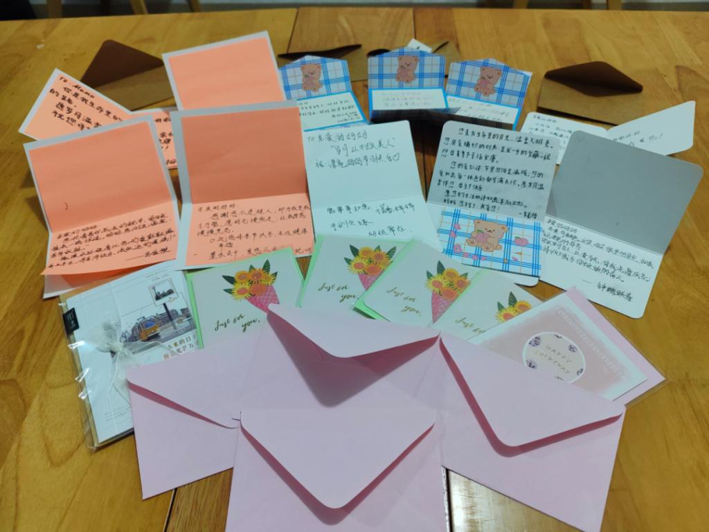 随后,同学们手持彩色卡纸认真书写,那些未能宣之于口的“您辛苦了”化作工整楷体,有人写到“您把青丝编成我的童年”;有人将思念折成形状,缀上“走再远也走不出牵挂目光”……写满了感恩话语。