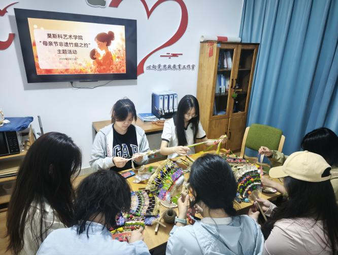 5月11日,莫斯科艺术学院在学校、学院“一站式”辅导员工作站同时开展"制扇寄情,感恩母爱"非遗竹扇主题活动,学院党总支副书记叶晓燕、学工办副主任段菲、全体辅导员及部分省外学生40余人参与,在传统工艺的魅力中传递对母亲的感恩之情。
