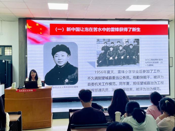 5月26日下午,马克思主义学院在1101教室举办雷锋精神宣讲会,由院长张萍作专题宣讲报告,学院党总支副书记肖飞、辅导员陈晨及2023级全体学生参加。