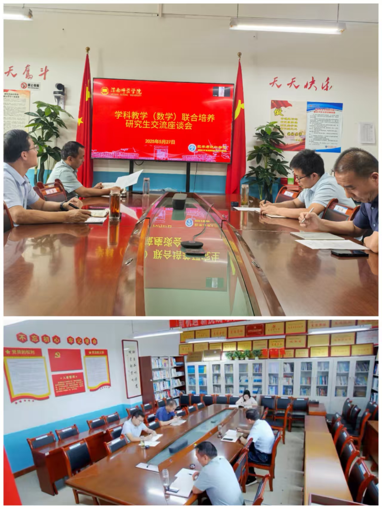 5月27日下午,数学与统计学院召开学科教学(数学)2023-2025级联合培养研究生交流座谈会。院长陈斌主持会议,研究生导师赵教练、戴磊、余保民,学科科研秘书李孟阁及8名联合培养研究生参会。
