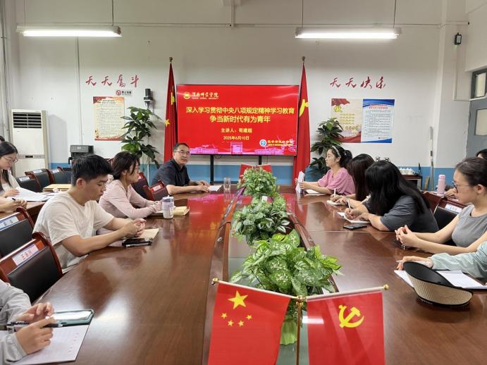 苟建超结合自身工作经验,以及对中央八项规定精神的深入学习与思考,清晰明了地解读了深入贯彻中央八项规定精神学习教育应该“学什么”“查什么”“改什么”,并将中央八项规定精神与学生党员成长深度融合,从参与科研项目到学生活动策划,从班级事务处理到日常生活细节,直指学生党员和学生干部群体中可能存在的形式主义、官僚主义等四风苗头,将抽象的纪律约束转化为青年学子听得懂、做得到的具体行动要求,让中央八项规定精神真正入脑入心,为青年学子带来了一场充满实践温度的思政课。