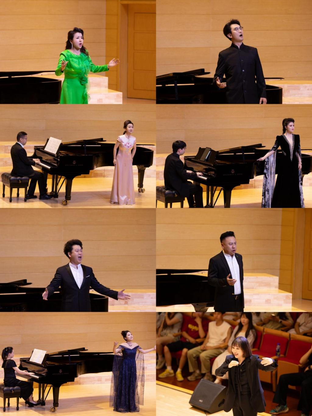 武汉音乐学院余惠承教授作为此次音乐会的核心人物,凭借其精湛的演唱技艺为每一首作品注入了灵魂,让观众更加深入地理解了古诗词艺术歌曲的创作背景、文化内涵以及演唱技巧。既有气势恢宏、尽显豪迈气魄的《大江东去》,也有旋律哀婉缠绵、诉说悠悠情思的《春花秋月何时了》。《锦瑟》以含蓄诗意与灵动节奏交织,引人入胜;《声声慢》凭借舒缓曲调与深情演绎,勾勒出孤寂意境,这些歌曲通过歌唱家们的精彩诠释,带领观众穿梭于千年诗词的美妙世界,感受诗与乐交融的独特魅力。余惠承教授及其团队的精彩表现,赢得了现场观众阵阵热烈掌声。威尼斯音乐学院的青年教师们也在音乐会上展现出了扎实的专业功底和对古诗词艺术歌曲的深刻理解,他们与余惠承教授团队默契配合,共同为观众呈现了一场高水准的音乐演出。