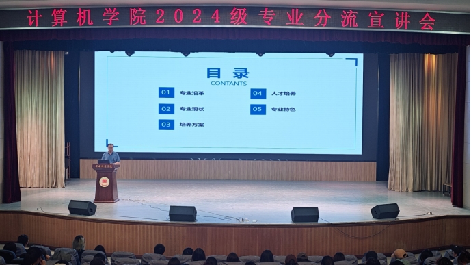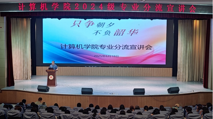 6月18日下午,计算机学院举办2024级“计算机类”大类招生专业分流宣讲会。此次宣讲会旨在帮助即将面临专业分流的同学们更好地了解各专业的特色及未来发展方向,为2024级本科生专业选择和学业规划提供指导。宣讲会由学院副院长哈渭涛主持。