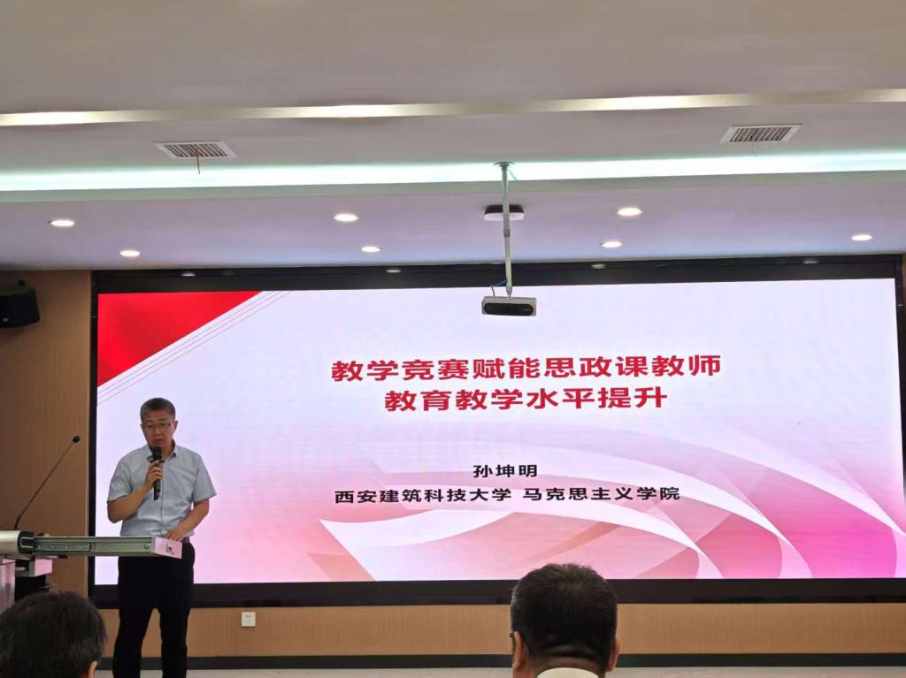 6月20日上午,马克思主义学院邀请第三届全国高校思政课教学展示活动一等奖、陕西省高校思政课“教学标兵”的西安建筑科技大学孙坤明副教授作“教学竞赛赋能思政课教师教育教学水平提升”的辅导报告。马克思主义学院党政领导和全体教师参加,副院长路玉麟主持。