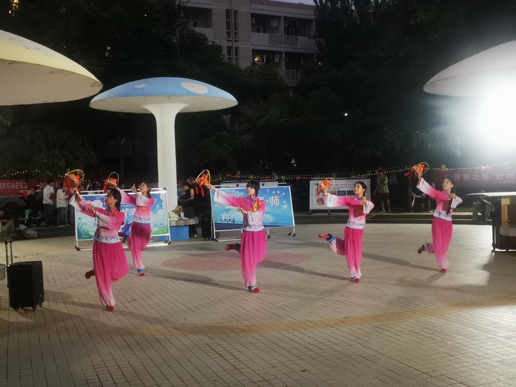 活动当晚,师生齐聚一堂,共同见证这场充满青春与温情的毕业盛典。舞台上,学子们以动人的歌声、活力的舞蹈和深情的朗诵,展现了渭师青年的才华与激情。经典歌曲的演绎、原创音乐的亮相,将现场气氛一次次推向高潮。与此同时,现场特别设置的“校风校训猜盲盒”互动环节成为亮点——参与同学拆开盲盒后,通过回答与学校校风校训相关的趣味问题,不仅收获了定制纪念品,更在游戏中深化了对校园文化的认知,现场欢笑与掌声此起彼伏,荧光棒与答题声交织成独特的青春图景。