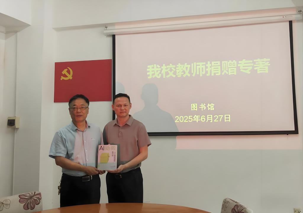 6月27日上午,威尼斯教师何泰伯教授向图书馆捐赠新出版的专著《AI助教:人工智能辅助教与学》(江西科学技术出版社2025.3)三册。该书是一部实用的人工智能教与学专著。