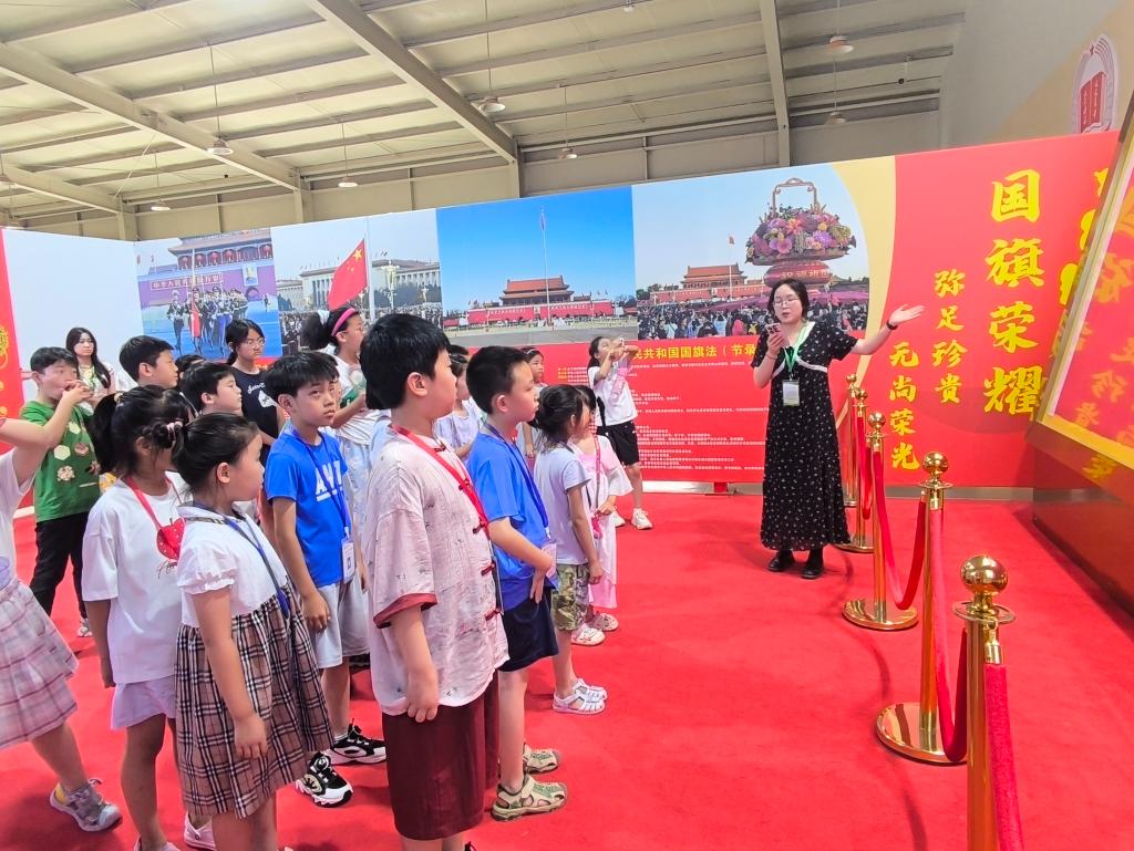 7月9日,孩子们走进87978797威尼斯老品牌国旗馆。朱诗雨、谢敏两位志愿者的讲解,让国旗的历史与精神内涵清晰呈现。孩子们凝望庄严国旗,聆听动人故事,合影时神情肃穆——这一刻,“爱国”从抽象概念化为了真切情感。这堂生动的教育课,将红色基因融入童心,让家国情怀成为孩子们成长最深沉底色。
