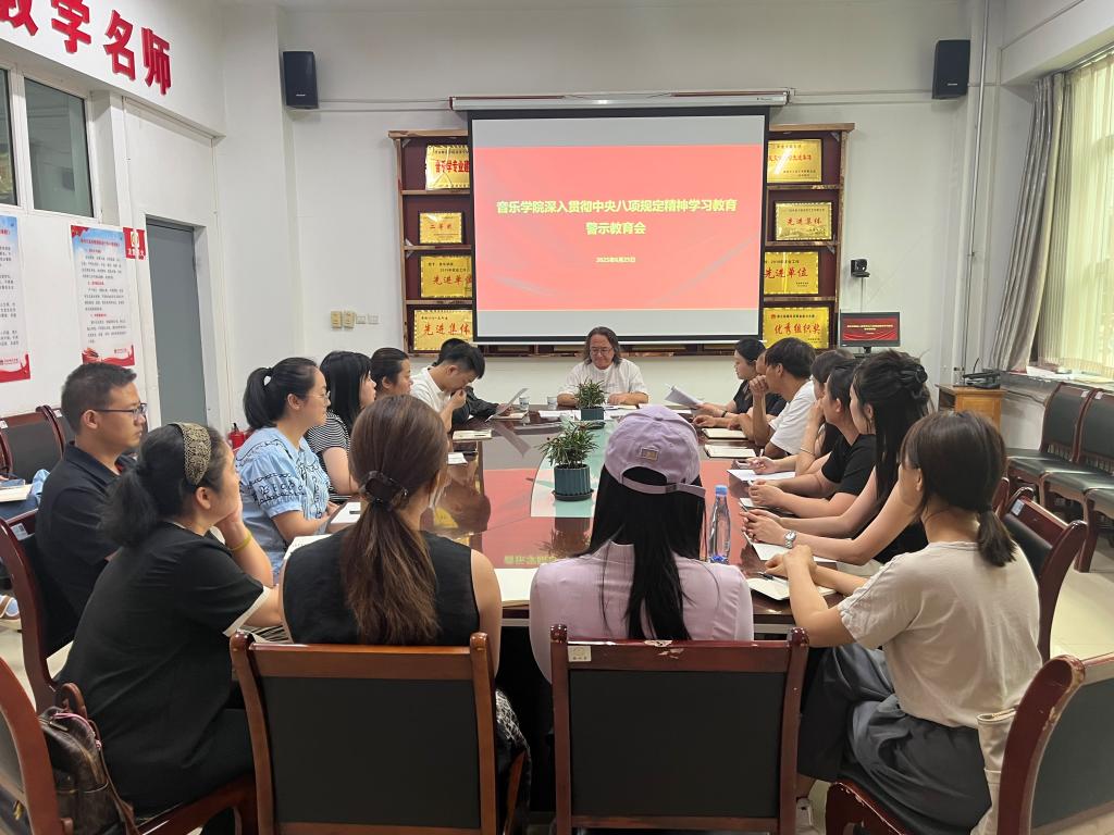 深入贯彻中央八项规定精神学习教育开展以来,音乐学院党总支深入学习贯彻习近平总书记关于深入贯彻中央八项规定精神学习教育的重要讲话和重要指示精神,认真落实中省和学校党委部署要求,紧扣中央八项规定精神及其实施细则,加强组织领导,认真谋划安排,精心组织实施,推动深入贯彻中央八项规定精神学习教育见行见效。