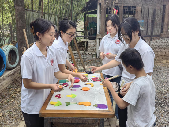团队在课程设计上力求精准务实。依托“丝路艺创”辅导员工作室,深入调研特殊儿童需求,反复打磨课程体系。针对特殊儿童的心理特点和成长需求,研发出音乐疗法、非遗体验、情景模拟等特色课程,如将《虫儿飞》歌曲与手势舞创新融合,让孩子们在艺术中感受温暖;设计“情景模拟小卖部”课程,帮助孩子们掌握基础生活技能。每一门课程都经过团队多次研讨优化,确保贴合实际、富有实效,避免形式主义,真正做到为特殊儿童成长助力。