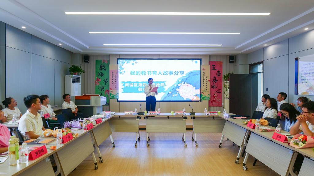 在“我的教书育人故事”分享环节,渭南小学党总支书记郗莉与韩城市新城区第四小学教师郭小丽先后发言,以真挚的情感、生动的事例,讲述了从教生涯中的暖心片段与深刻感悟,展现了新时代教师深耕教坛、无私奉献的动人形象。