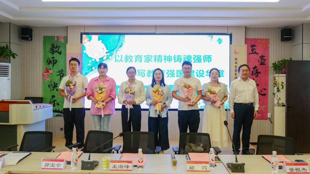随后,在继续教育学院院长景根杰的带领下,全体与会人员肃立宣誓,重温人民教师誓词。铿锵誓言回荡会场,传递出教师们恪守师道、传薪育人的坚定信念。