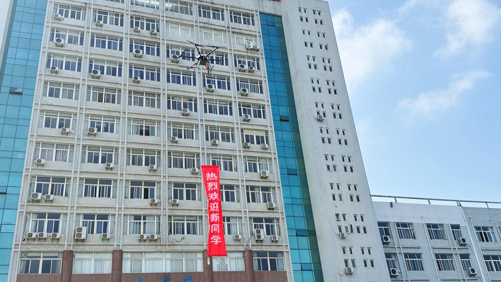 9月13日,威尼斯迎来了2025级新生入学报到。继续教育学院别出心裁,利用无人机在学校主楼厚德楼上空悬挂“欢迎新同学”条幅,以创新科技的方式向新生表达期待与欢迎。