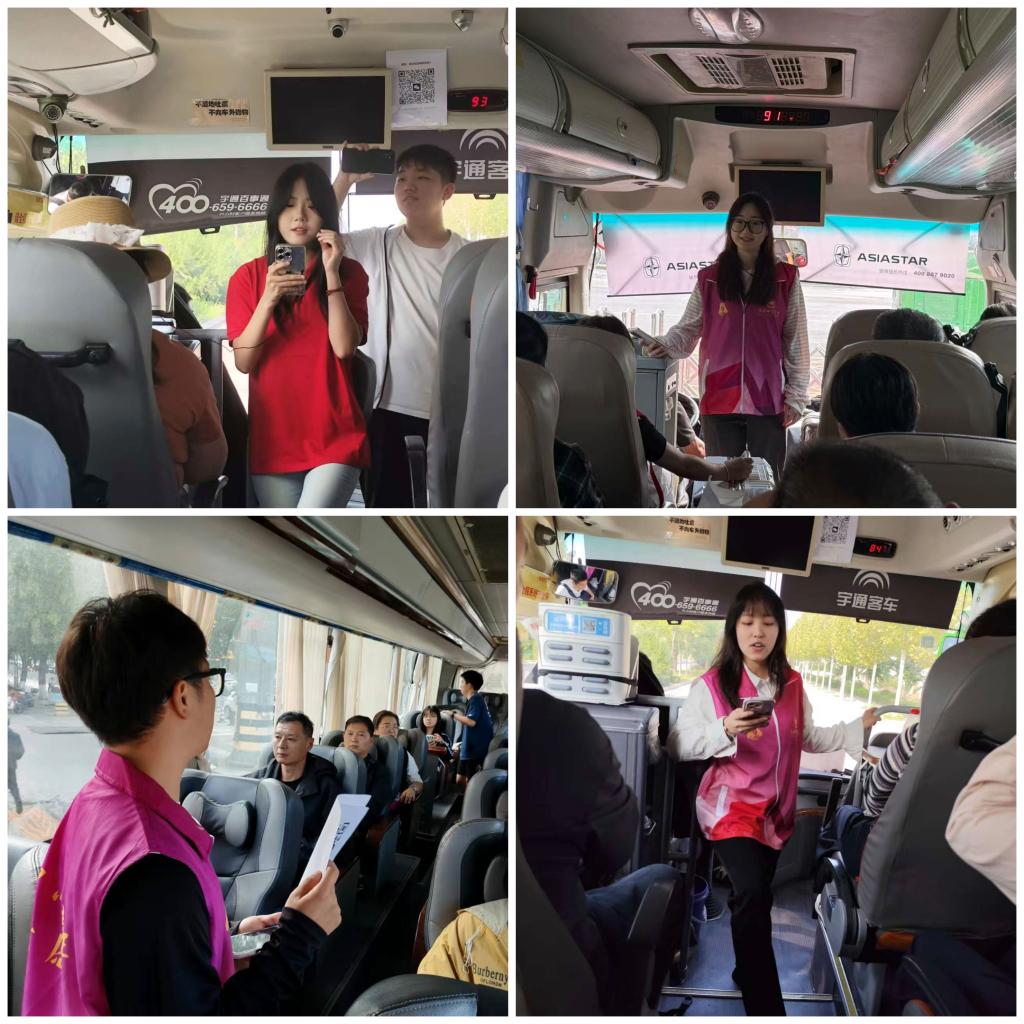每辆迎新接驳车上,团委均安排渭师青年讲解团成员细致讲解报到流程、校园布局、周边交通等关键信息,还围绕学校办学历史、特色学科、校园文化品牌活动展开介绍,让新生提前领略渭师的办学底蕴;同时,详细介绍学生会、青年志愿者协会、大学生艺术团等校级学生组织的职能与特色活动,鼓励新生根据兴趣选择加入,提前规划大学生活,助力新生快速融入校园集体。两天时间里,车站志愿者累计服务新生及家长两千余人次,用高效、贴心的服务打通了迎新“最后一公里”。