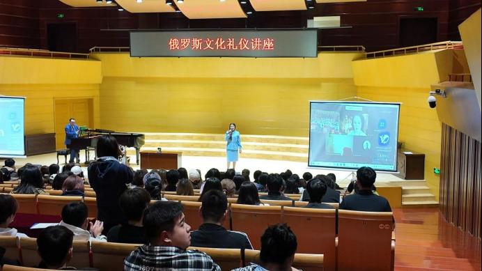 10月14日晚,莫斯科艺术学院举办俄罗斯文化礼仪专题讲座。莫斯科国立师范大学中俄统筹中心主任叶莲娜·维亚切斯拉夫娜·马克耶娃主讲,教师成瑞璞担任翻译。
