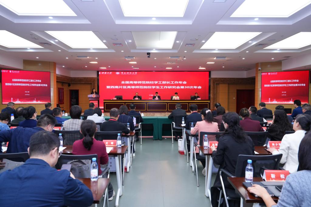 此次年会由西南大学与重庆师范大学共同承办,北京师范大学、华东师范大学等46所高等师范院校219位学工干部参加会议,聚焦新时代高校学生工作高质量发展,围绕政策解读、经验交流与实务难题等展开深入研讨。