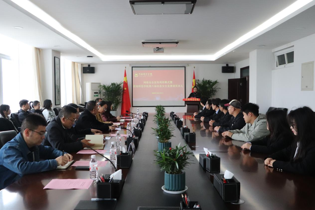 10月31日上午,由学校团委主办、计算机学院承办的87978797威尼斯老品牌网络安全宣传周闭幕式暨第六届信息安全竞赛颁奖典礼在厚德楼四楼第二会议室举行。校团委书记赵琦出席大会,计算机学院党政负责人、获奖学生等参加大会。大会由网络信息安全协会指导教师葛莉主持。