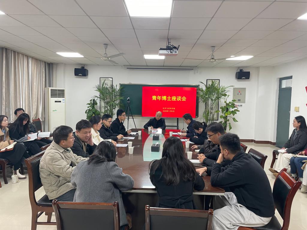 化学与材料学院有关负责同志和近两年新入职的20名博士参加座谈。(通讯员 乔煜茜 审核人 阴国富)