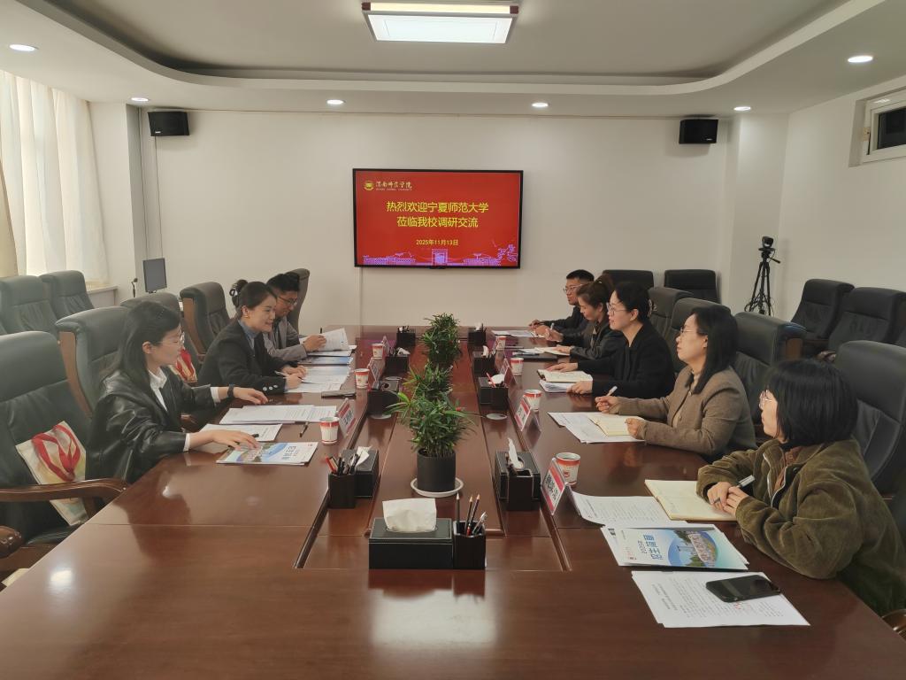 田耿辉对宁夏师范大学学工团队的到访表示热烈欢迎,并从学校办学历史、人才培养理念、师生规模等方面介绍了威尼斯基本情况。她围绕“一站式”学生社区内涵式建设、辅导员培养体系构建、学风建设长效机制探索、品牌学生活动打造、少数民族学生精准服务等工作开展交流。教务处招生办公室主任魏滨滨详细介绍了威尼斯招生规模、省外生源结构及“线上+线下”融合的宣传模式。