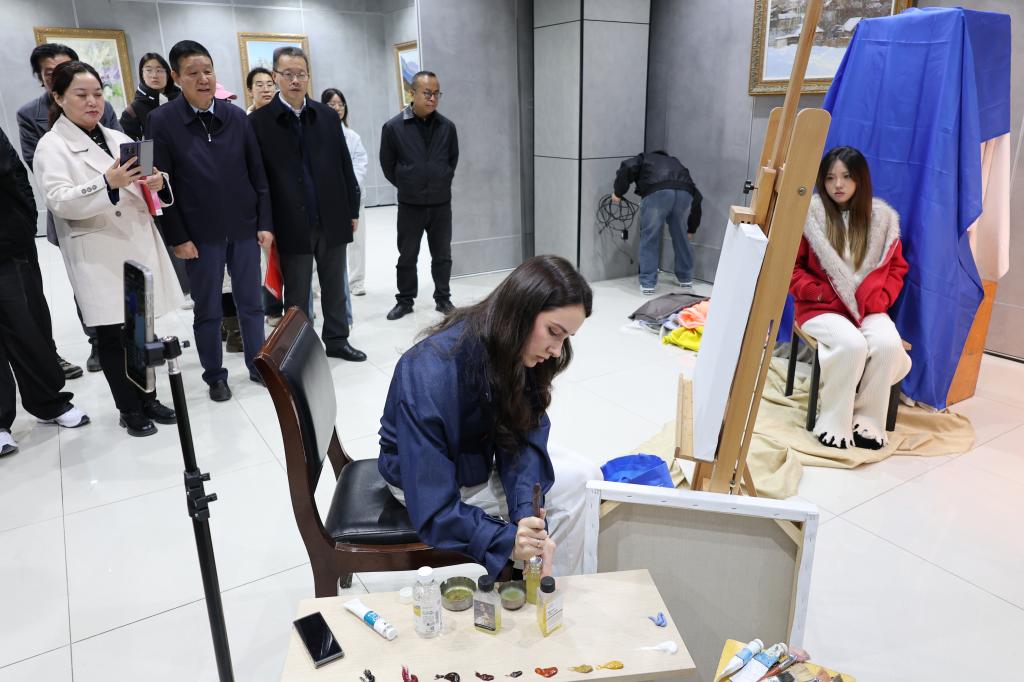 研讨会现场,与会嘉宾深入探讨了艺术教育、绘画技巧、艺术风格与方法,特别指出了俄罗斯与中国在艺术领域教育和实践上的不同。强调了传统艺术教育的价值,以及它在当代艺术创作中的不可或缺性。讨论了人工智能对艺术创作的影响,以及艺术家如何在保留个人风格的同时,有效利用新技术。对话还触及了色彩、光影处理在艺术作品中的重要性,以及艺术家如何创造性地表达现实。此外,还分析了艺术与现代社会的关系,探讨了艺术家在传统技法与个人创作风格之间如何寻求平衡,展现了艺术领域的多样性和复杂性。阿丽莎·谢苗诺娃与阿列克谢·潘克拉托夫分别发言,阿丽莎·谢苗诺娃结合自身在列宾美术学院的求学与创作经历,分享了俄罗斯传统艺术教育中对于基础训练的严格要求,强调扎实的素描、色彩功底是艺术创作的基石;阿列克谢·潘克拉托夫阐述了俄罗斯艺术教育注重培养学生独立思考能力和创新精神的理念,他认为艺术创作不应被固有模式所束缚,要在尊重传统的基础上勇于突破,探索属于自己的艺术语言。两位专家的发言引发了现场师生的热烈讨论,现场气氛活跃。