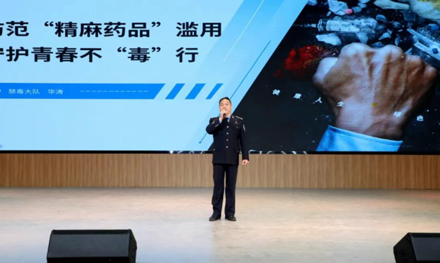“这些看似普通的‘奶茶’、‘邮票’,其实是伪装性极强的新型毒品……”禁毒大队副大队长华涛从传统毒品的种类、特性讲到极具隐蔽性和欺骗性的新型毒品,用生动形象的语言,结合震撼人心的真实案例,剥开毒品的层层“画皮”,向大家讲解毒品对于个人、家庭、社会的危害以及如何识别、防范毒品侵害的方法和技巧,提醒同学们面对来路不明的物品要提高警惕,呼吁大家保持积极心态和健康生活方式,构筑抵御毒品的坚固防线。