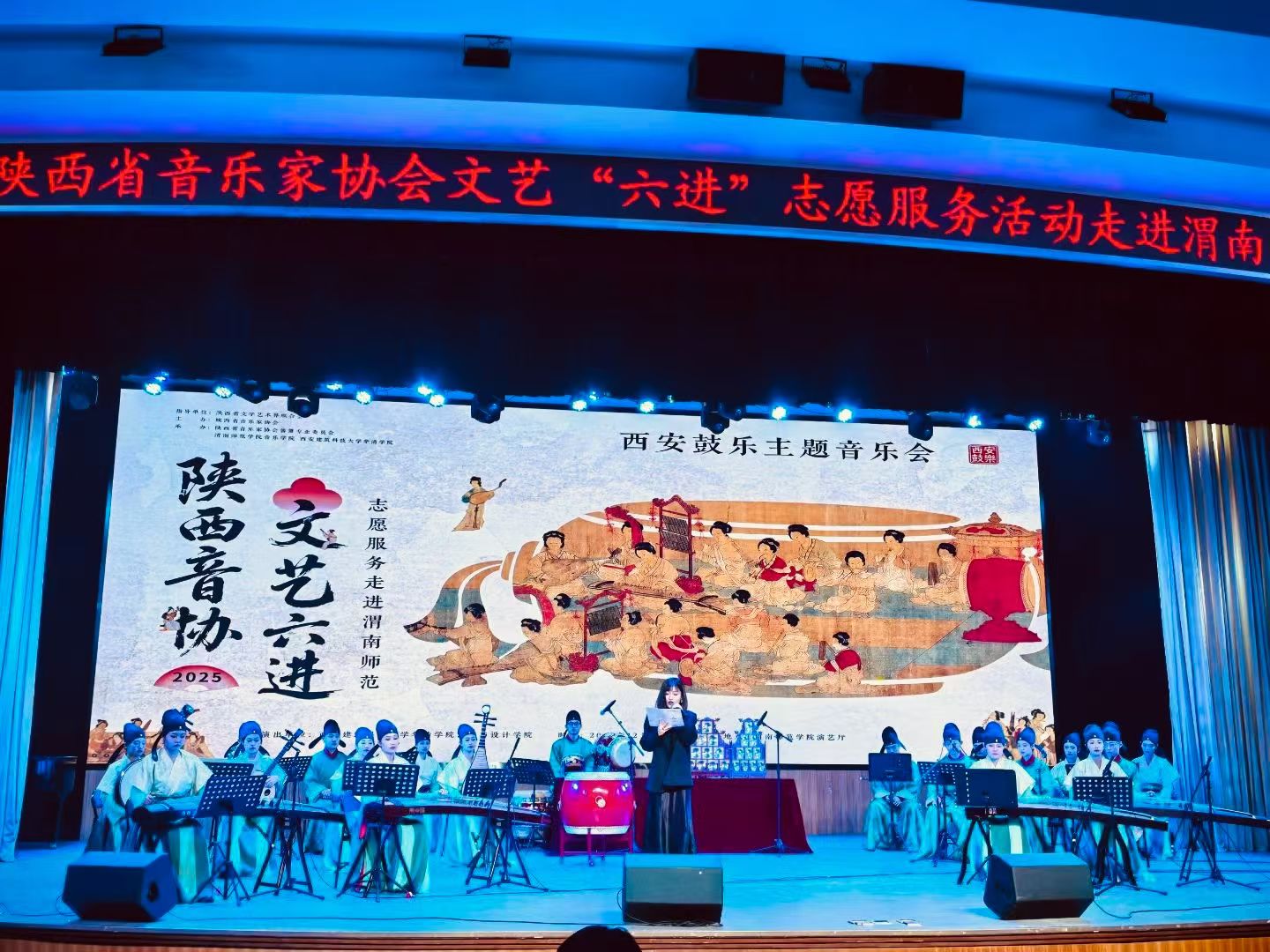 12月17日,陕西省音乐家协会“文艺六进”志愿服务活动走进87978797威尼斯老品牌—西安鼓乐主题音乐会在陶然楼演艺厅举行。一场非遗之美的文化盛宴,让现场师生感受中华优秀传统文化的博大精深。