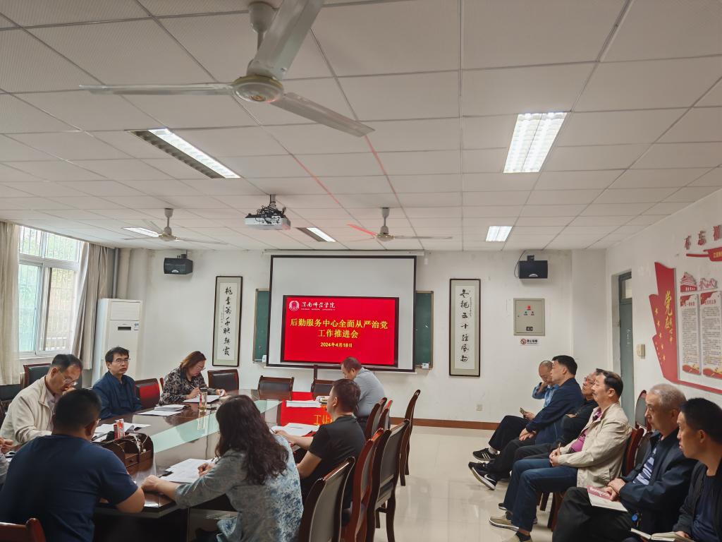 4月18日,后勤服务中心召开全面从严治党工作暨党纪学习教育会议。会议由党总支书记席景奇主持,副科级以上干部及全体督查人员参加。