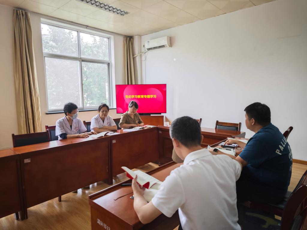 5月31日,附属医院党支部召开党纪学习教育专题学习会议,会议由支部书记王雅蓉主持,全体党员参加会议。