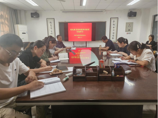 6月3日至6月5日,化学与材料学院党总支分别召开领导班子成员集中学习和教职员工集中学习,开展纪律学习教育活动。党总支书记韩城忠带领大家一起学习了习近平总书记关于党纪学习教育的重要讲话和重要指示精神,重点学习了习近平总书记关于政治纪律和政治规矩的重要指示批示精神——《必须对党的政治纪律和政治规矩怀有敬畏之心》。集中学习了中国社会科学院、中国廉政研究中心副秘书长孙大伟教授关于《中国共产党纪律处分条例》的相关解读——《推动党纪学习教育走深走实》的论述。
